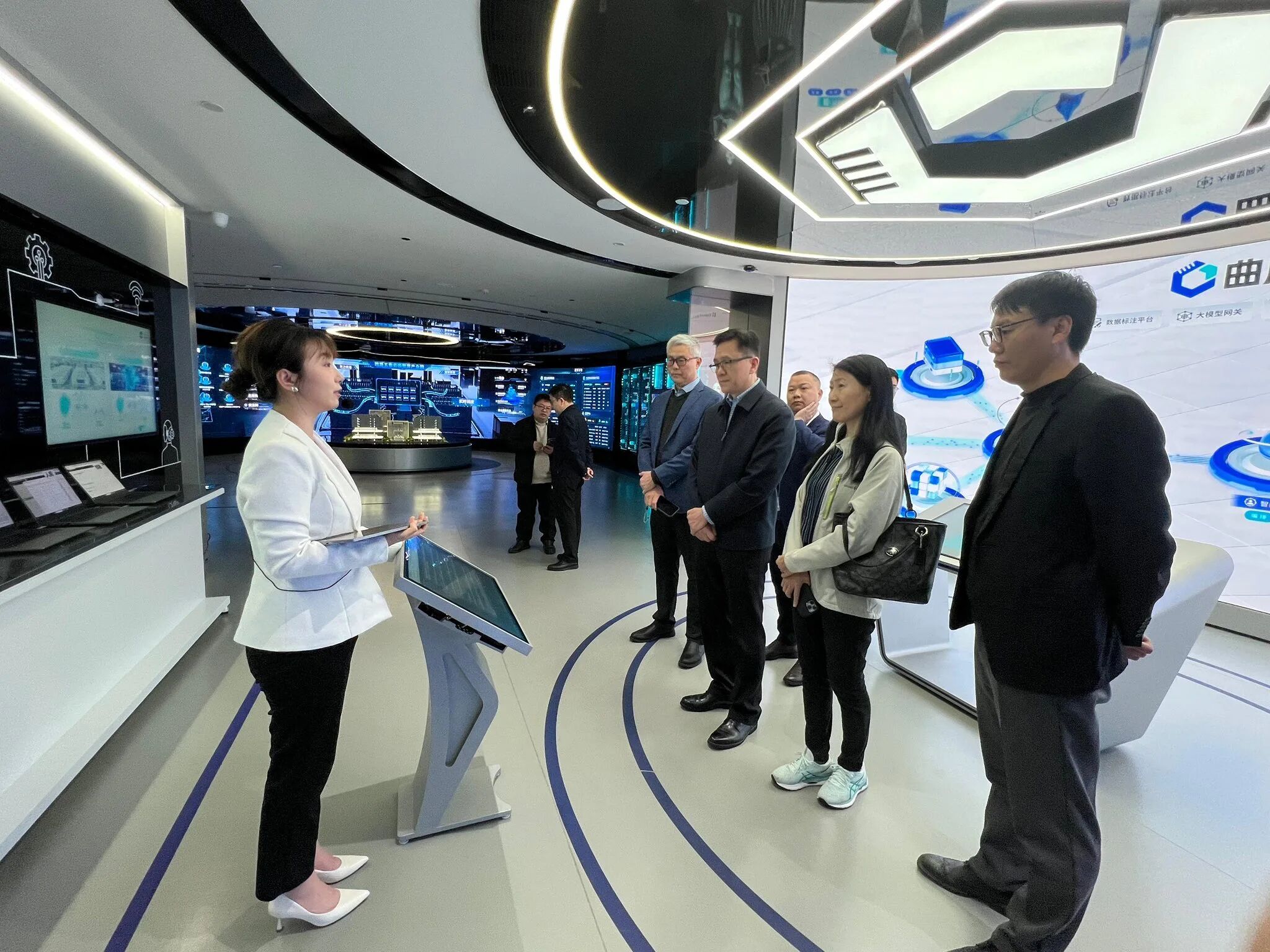 孫局長到中國—東盟國家人工智能應用合作中心展示中心調研,并參觀中心的展示廳。該中心是由廣西壯族自治區(qū)與東盟國家共建的人工智能合作平臺,旨在推動區(qū)域人工智能技術合作與產業(yè)數字化轉型,亦是面向東盟的產業(yè)高地。