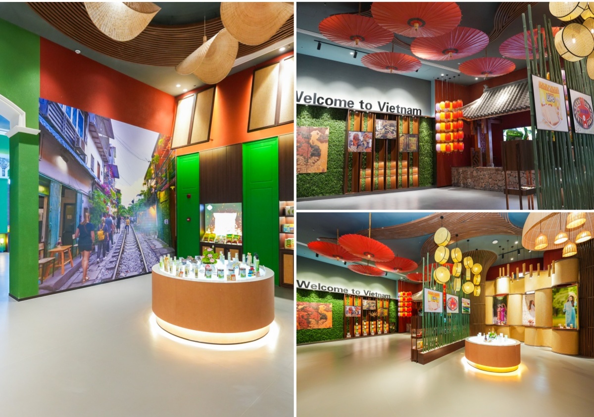 匯聚中心匠心打造了18個獨具特色的文化主題館。其中,越南主題館巧妙融入蓮花、竹子、戲臺、燈籠、梯田等越南經(jīng)典文化元素,充滿地域特色的建筑細(xì)節(jié)與裝飾風(fēng)格相得益彰,讓到放者仿佛置身越南街頭。
