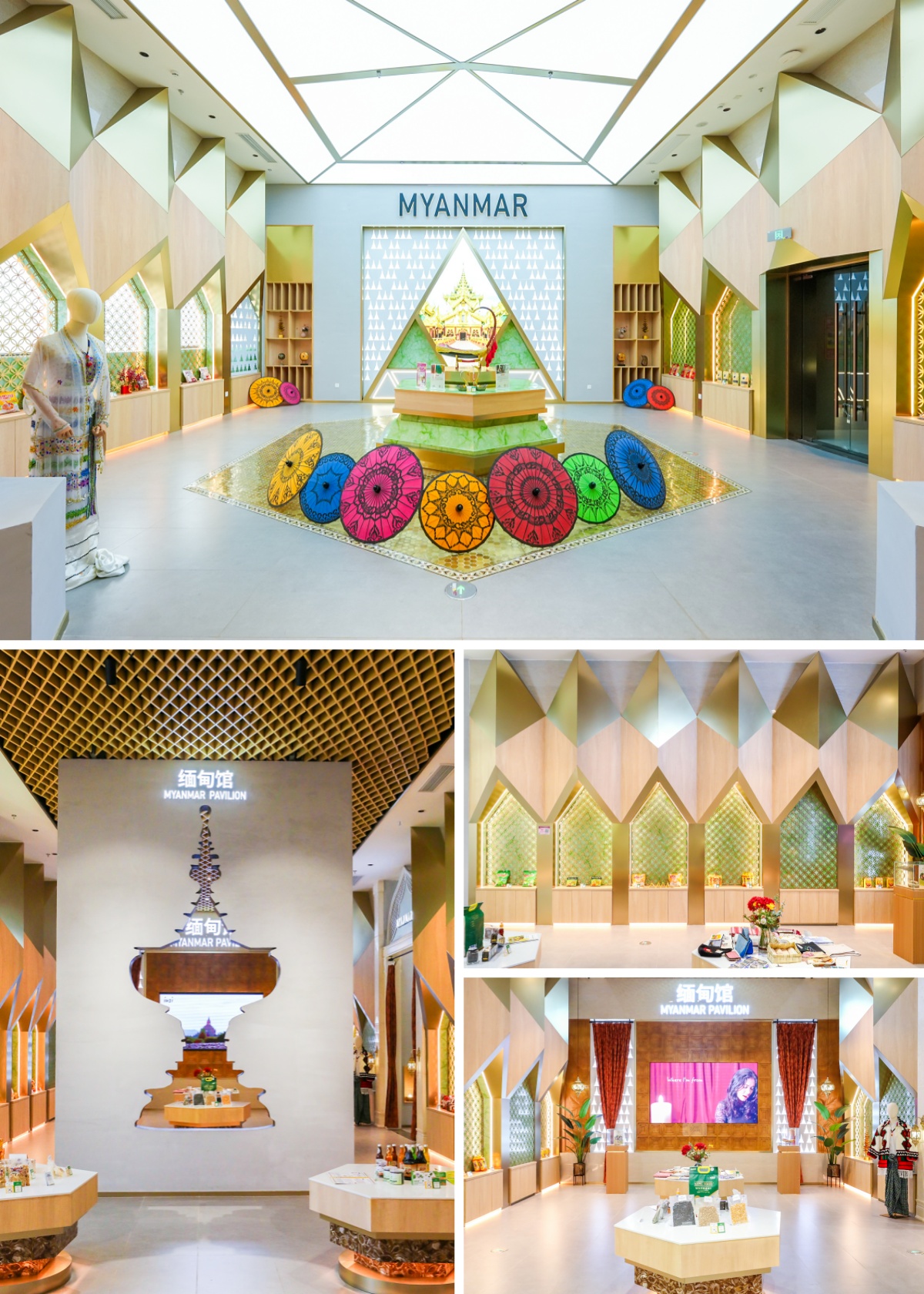緬甸主題館內(nèi)展示了啤酒、茶葉、木偶奶茶、香米等多款特色商品,加之獨具當(dāng)?shù)靥厣恼故九_,它們共同為我們打開了一扇感知緬甸民俗風(fēng)情的窗口。